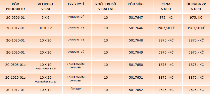 Terapeutická krytí pro hojení ran a kompresivní pomůcky pro léčbu otoků